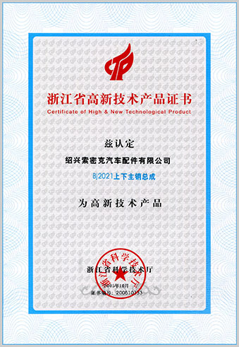 公司已先后通過IATF16949質量管理體系認證、ISO/14001環(huán)境管理體系認證和OHSAS18001職業(yè)健康安全管理體系認證。是“國家高新技術企業(yè)”“行業(yè)龍頭企業(yè)”和“全國百家優(yōu)秀汽車零部件供應商”。